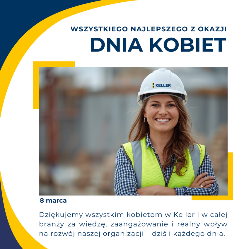 Dziś dzień wszystkich Pań, a w szczególności tych, które każdego dnia współtworzą Keller Polska. Inżynierki, specjalistki, liderki, menedżerki, ekspertki – w biurach i na budowach, w zespołach technicznych, finansowych, operacyjnych i zarządczych. Dziękujemy za profesjonalizm, odpowiedzialność i odwagę w podejmowaniu wyzwań w branży, która zmienia się dzięki różnorodności kompetencji i perspektyw. W Keller wierzymy, że siłą organizacji są ludzie – a fundamentem rozwoju są równe szanse, wzajemny szacunek i współpraca. Wszystkim Kobietom w Keller i poza nią – wszystkiego najlepszego z okazji Dnia Kobiet.