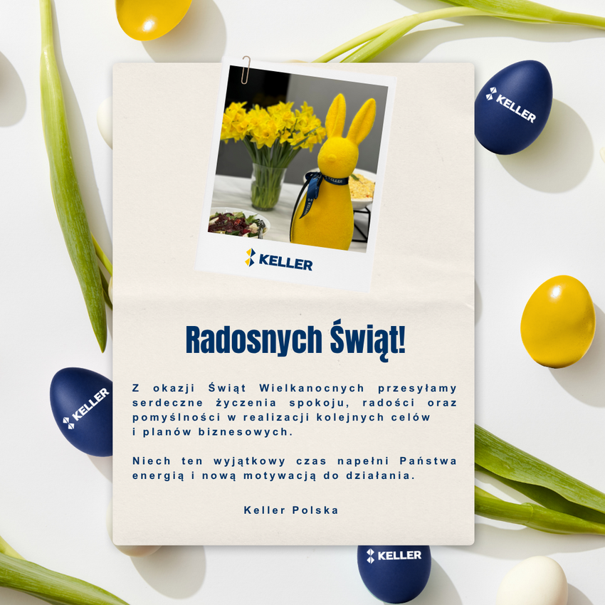 Z okazji Świąt Wielkanocnych życzymy spokoju, radości i chwili wytchnienia. Niech ten świąteczny czas przyniesie nową energię, optymizm i inspirację do podejmowania kolejnych wyzwań - zarówno zawodowych, jak i osobistych. Wesołych Świąt! Zespół Keller Polska